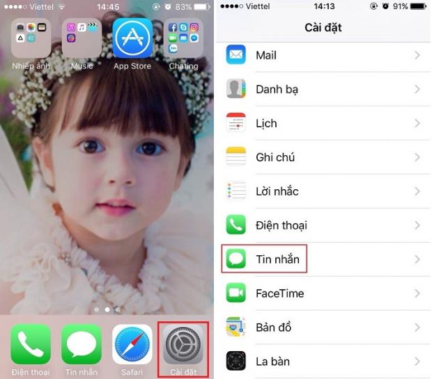 Bước 1: Vào Cài đặt > Tin nhắn.