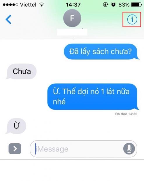 Bước 3: Để tắt thông báo đã đọc đối với một người nào đó, bạn mở mđoạn tin nhắn của người đó lên và nhấp vào biểu tượng chữ “i” ở góc trên bên phải màn hình.
