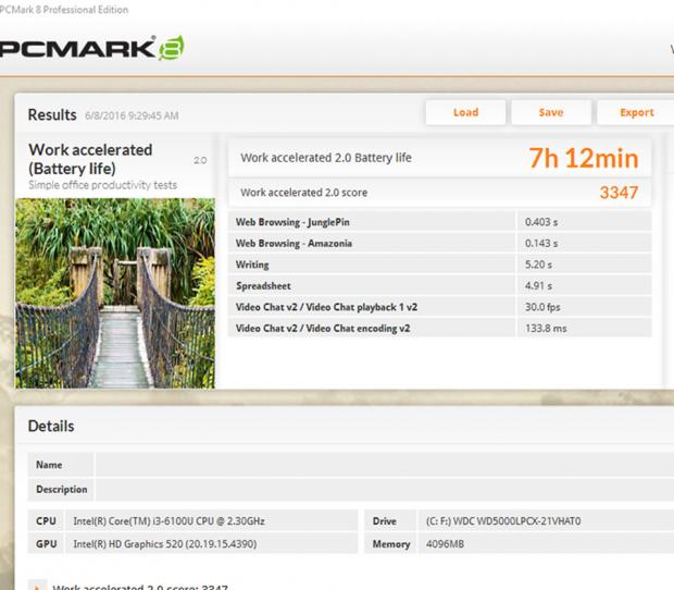 PCMark 8 kiểm tra pin Acer Aspire F5-573 phiên bản 2016