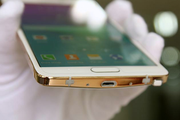 Thay thế cho lớp sơn nguyên bản là lớp vàng mạ 24K, điều này làm lộ ra các chi tiết như dải nhựa thô trên khung viền Note 4.