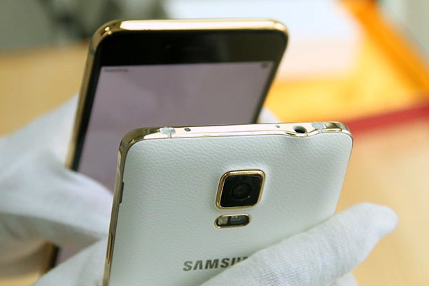 Chi phí mạ vàng 24K cho một mẫu Galaxy Note 4 thông thường thấp hơn so với iPhone 6 và 6 Plus.