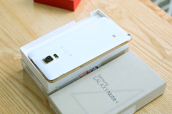 Chiếc Galaxy Note 4 đầu tiên được mạ vàng ở Hà Nội là phiên bản màu trắng và sử dụng vàng 24K. So với hình thức nguyên bản, các chi tiết màu vàng khiến cho máy sang hơn. Tuy nhiên, các chi tiết trang trí thêm không được bổ sung thêm vì mặt lưng máy làm từ chất liệu nhựa thay vì kim loại.