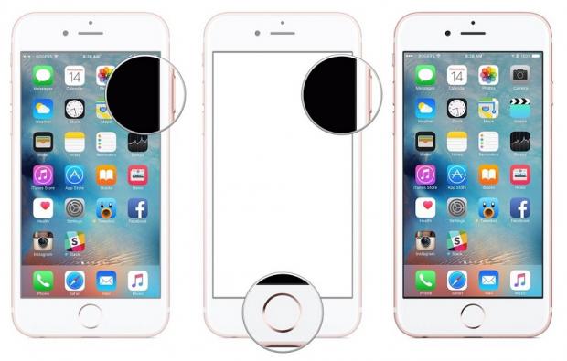 2. Nhấn và giữ nút Power (nút nguồn) ở cạnh phải, đồng thời chạm vào nút Home trong khoảng thời gian đó (điều này giúp đảm bảo bạn không kích hoạt Touch ID hoặc Siri một cách tình cờ khi đang cố chụp ảnh màn hình).