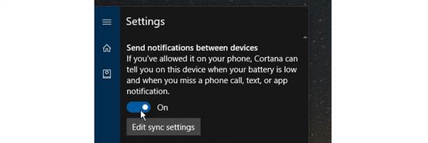 - Trên PC, bạn cần khởi chạy Cortana trên thiết bị Windows 10 sau đó bật chức năng Send notifications between devices từ ứng dụng Settings.
