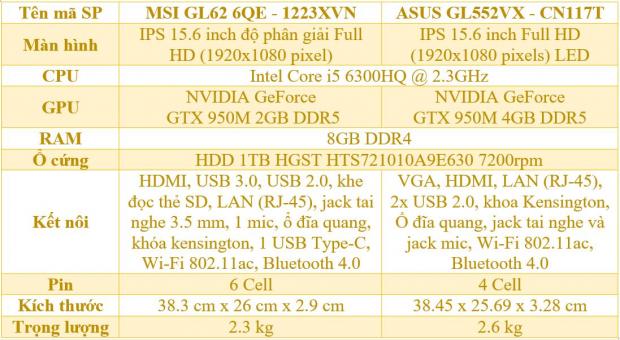 Là hai chiếc laptop được nhà sản xuất hướng tới đối tượng là những sinh viên, chưa có nguồn tài chính vững mạnh nhưng vẫn muốn sở hữu cho mình những chiếc laptop cấu hình cao với khả năng chiến tốt hầu hết những game phổ biến. MSI GL62 6QE và ASUS GL552VX đều là những sản phẩm nổi bật cạnh tranh trực tiếp trong phân khúc laptop gaming trên dưới 20 triệu.