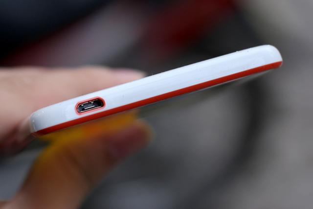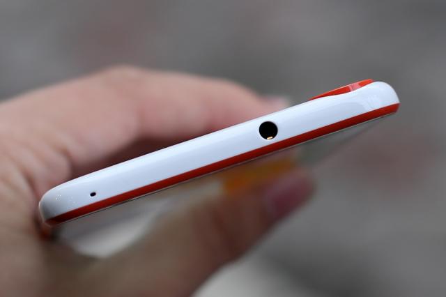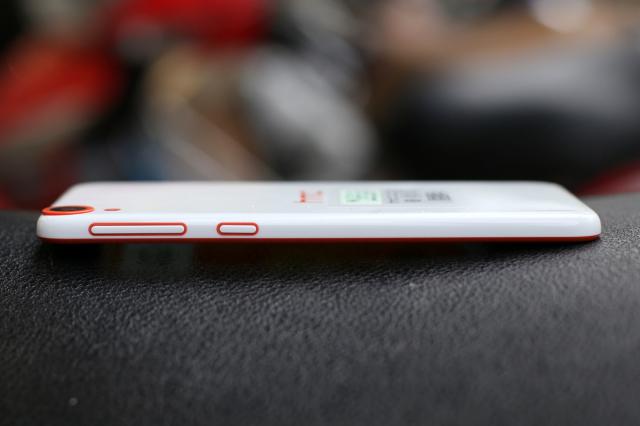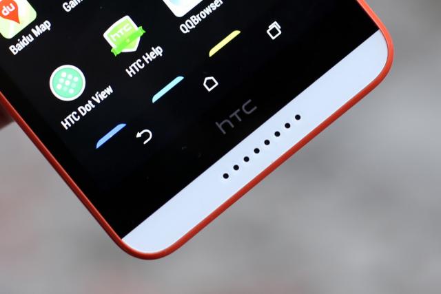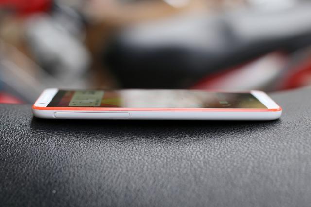 HTC sử dụng các viền màu để làm cho thiết kế của Desire 820 trông bắt mắt hơn. Cạnh phải là phím âm lượng và phím nguồn.
