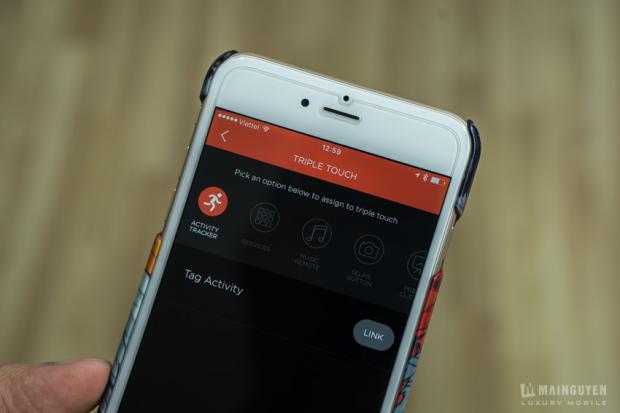Sử dụng ứng dụng Misfit Link để thiết lập các lệnh chạm như tắt/mở nhạc, qua bài, chụp ảnh...