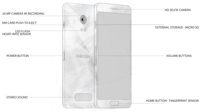 Trong mẫu concept của website 3G, Galaxy S6 có màn hình QHD 5,2 inch, chip Snapdragon 810, loa stereo, camera 20 'chấm' chống rung quang học.