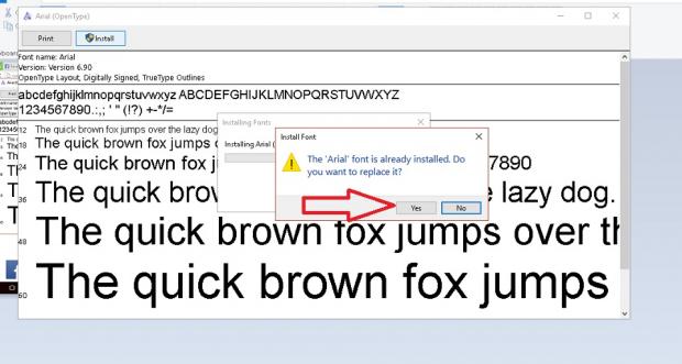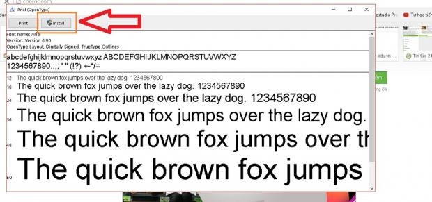 Một cửa sổ mới hiện lên, bạn tick vào Install để cài đặt font Arial. Chờ vài giây để máy thực hiện cài đặt. Sau đó khởi động lại.