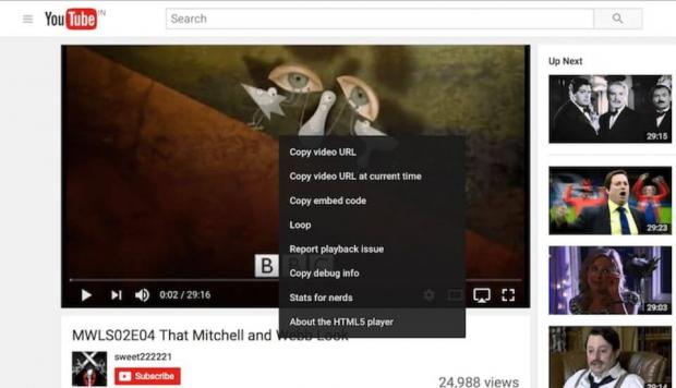 Bước 2: Nhấp chuột phải vào video. Bạn sẽ thấy menu của Youtube xổ xuống và không có tùy chọn “Picture-in-Picture”.