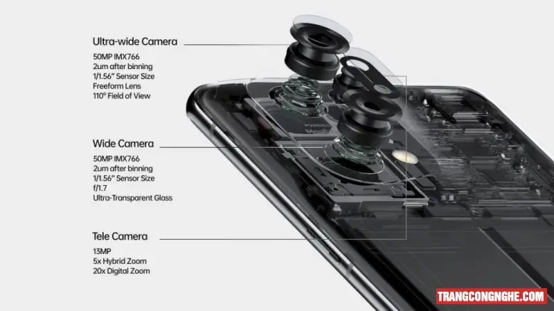 Về cấu hình, máy chỉ được chạy vi xử lý Snapdragon 888, viên pin 4.800mAh và hỗ trợ sạc nhanh có dây 80W, không dây 30W. Máy có hệ thống 3 camera sau với độ phân giải lần lượt là 50MP (Sony IMX766) + 50MP (góc siêu rộng) + 13MP (Tele 2x). Camera selfie 32MP (IMX615).