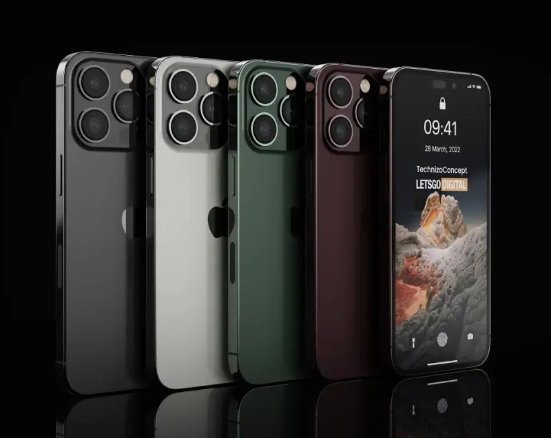 Trong những mẫu hình ảnh rò rỉ thì chúng ta được thấy chiếc iPhone 14 Pro có đến 4 tuỳ chọn màu sắc. Theo nhà thiết kế thì Apple sẽ loại bỏ 'Tai thỏ' như các phiên bản trước đó và thay vào đó là thiết kế có 2 vết cắt như hình viên thuốc và 1 cụm camera nằm dưới màn hình. Điều đặc biệt trong bản thiết kế này Apple cho biết về mở khoá vân tay sẽ nằm dưới màn hình.