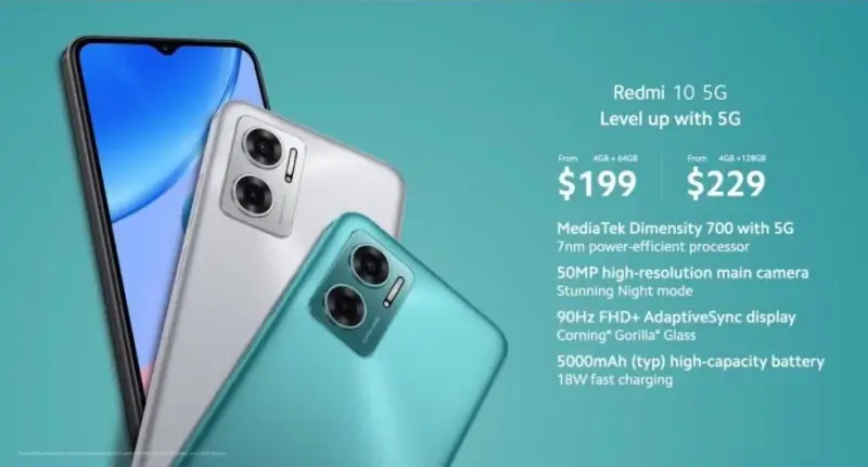 Xiaomi đã công bố điện thoại thông minh Redmi 10 5G giá rẻ trên thị trường toàn cầu. Thiết bị có bộ nhớ 4GB RAM/64 GB được chào bán với giá 199 USD (Khoảng 4.5 Triệu). Cấu hình 4GB RAM/128GB có giá 229 USD (Khoảng 5.2 Triệu).![]()