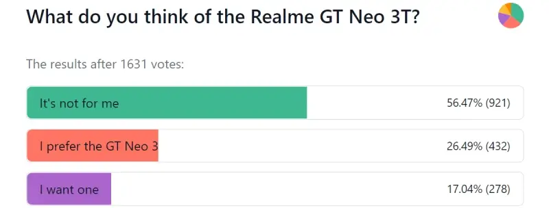 Kết quả thăm dò hàng tuần cho thấy Realme GT Neo 3T đang chật vật thu hút người hâm mộ