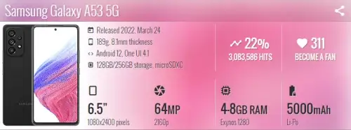 Galaxy A53 giữ vị trí thứ tư, theo sau là Poco GT X4 ở vị trí thứ năm.