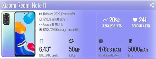 Redmi Note 11 nhận vị trí thứ sáu, nhưng vẫn trên iPhone 13 Pro Max một bậc.