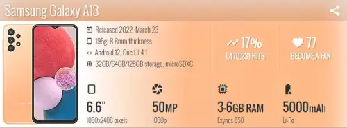 Tiếp theo đó là cặp đôi điện thoại khác đến từ Samsung, lần lượt là Galaxy A13 và Galaxy A73.