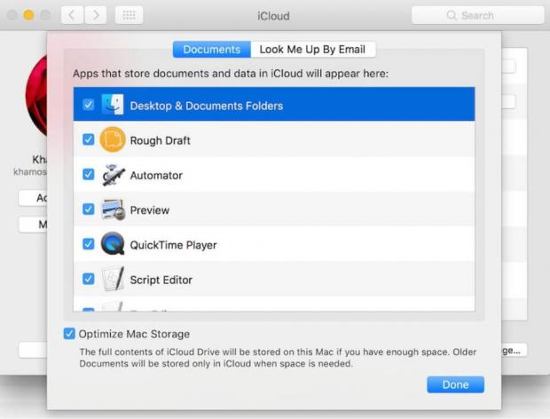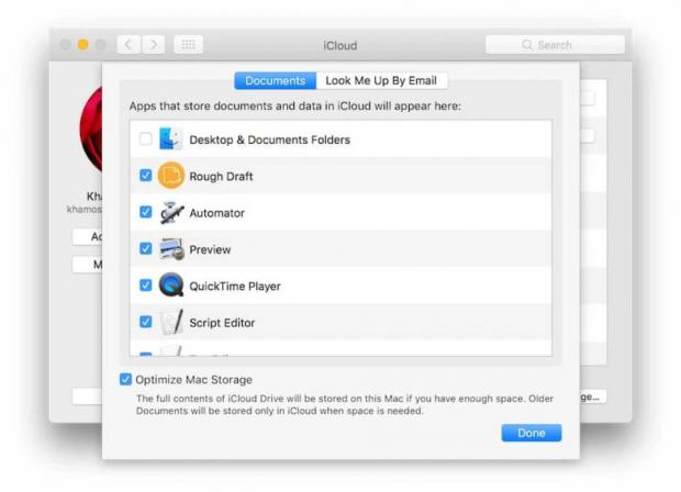 Bạn sẽ thấy mục Desktop & Documents Folders, nhấp vào hộp kiểm bên cạnh nó và sau đó click vào nút Done.