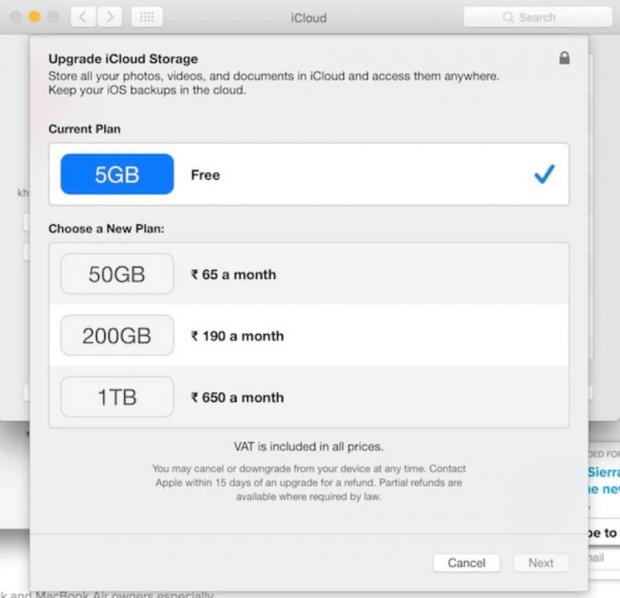 Nếu bạn không có đủ dung lượng iCloud Drive, bạn sẽ thấy một bảng thông báo nâng cấp dung lượng iCloud như thế này.