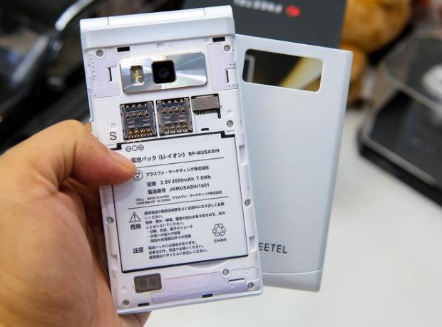Bên cạnh đó, Freetel Musashi có đầy đủ 2 camera, trong đó camera phía ngoài có độ phân giải 2MP dùng để tự sướng, còn camera sau có độ phân giải 8MP, khẩu độ f/2.2 chụp ảnh bình thường. Ngoài ra, máy được trang bị 2 khe SIM, hỗ trợ 4G-LTE cùng viên pin dung lượng 2.000mAh có thể tháo rời, cho thời gian sử dụng gần 1 ngày làm việc.