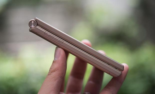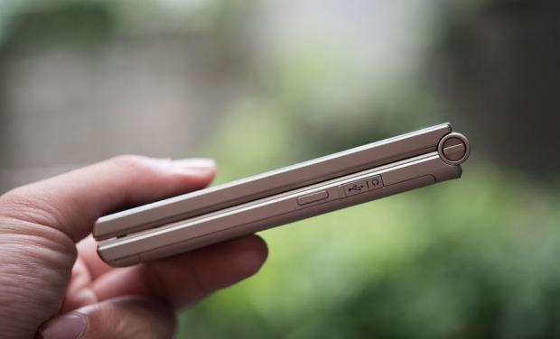 Cạnh phải là nút nguồn và cổng sạc, đồng thời cũng là jack cắm tai nghe microUSB và được bảo vệ bằng một nắp che. Phía trên có thêm chỗ lắp dây đeo, đặc điểm quen thuộc trên các model nắp gập cũng như các dòng máy phổ thông trước đây nhưng đã bị loại bỏ hầu hết trên các smartphone hiện nay.