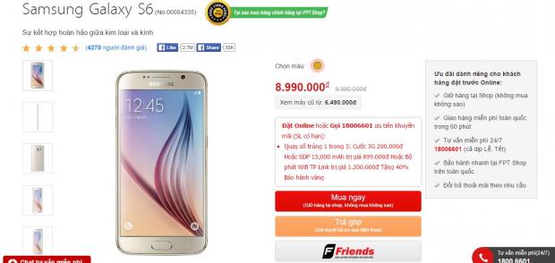 Đặc biệt nhất, Galaxy S6 mới đây đã được giảm giá thêm lần nữa, từ 9.99 triệu xuống còn 8.99 triệu đồng, giảm tới 1 triệu đồng, hấp dẫn đấy chứ? Chi tiết và đặt mua tại đây.