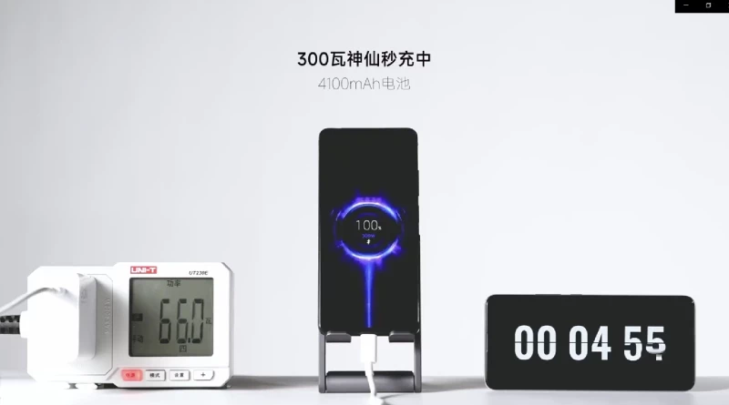 Cho đến mới đây, để chứng minh cho khả năng đi tiên phong trong lĩnh vực sạc nhanh, Xiaomi đã đưa ra câu trả lời với realme bằng một bản demo khổng lồ lên đến 300W, có khả năng sạc đầy điện thoại trong vòng chưa tới 5 phút. Xiaomi nói thêm rằng bộ sạc nhanh 300W mới này vẫn giữ được kích thước tương đồng với bộ sạc 210W trước đó, nhờ thiết kế mô-đun tốt hơn đi kèm với tản nhiệt ở bên trong.