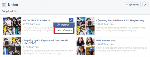 Rời khỏi nhóm tham gia trên Facebook: