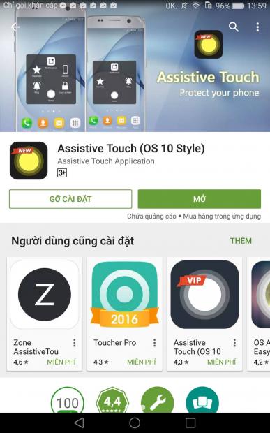 Sau khi cài đặt hoàn tất, mở ứng dụng lên và bật tùy chọn Assistive touch.