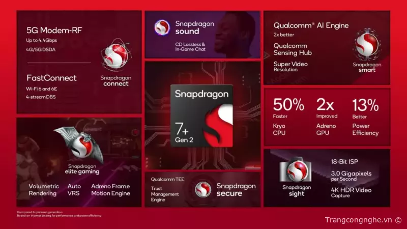 Qualcomm gần đây đã công bố chipset di động Snapdragon 7+ Gen 2 dành cho điện thoại thông minh tầm trung cao cấp. Đây là SoC Snapdragon 7-series thứ hai được Qualcomm công bố và là bản nâng cấp so với Snapdragon 7 Gen 1 SoC năm ngoái. Công ty chưa bao giờ công bố biến thể '+' của Snapdragon 7 Gen 1, cũng như không phát hành Snapdragon 7 Gen 2 tiêu chuẩn.