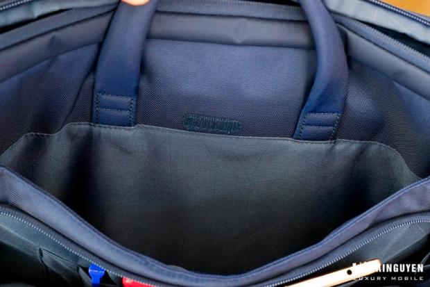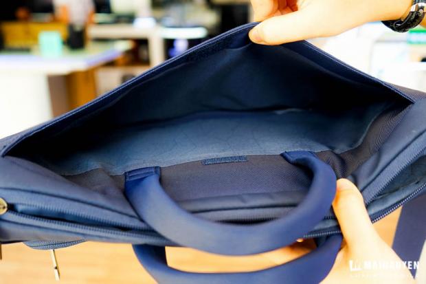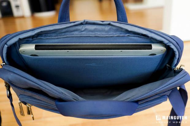Mình dám chắc là nó có thể dựng 2 chiếc Macbook 15 inch một các vừa vặn. Bên dưới đây của ngăn, lớp đệm mút mềm được làm rất dày (hơn 1cm) giúp cho chiếc laptop của bạn tránh ảnh hưởng ở mỗi va chạm.