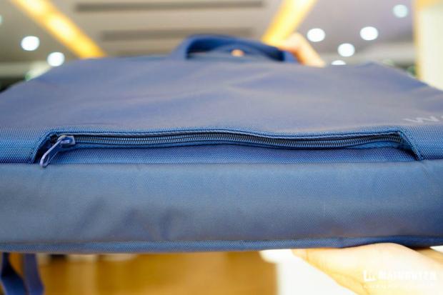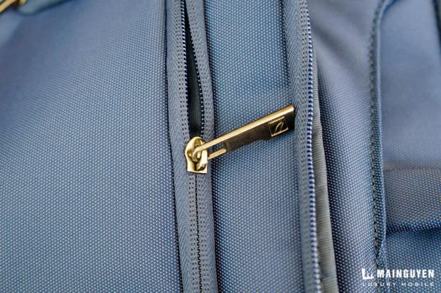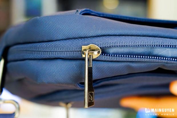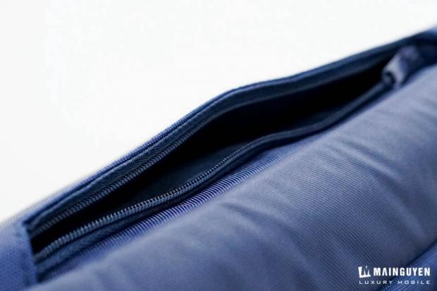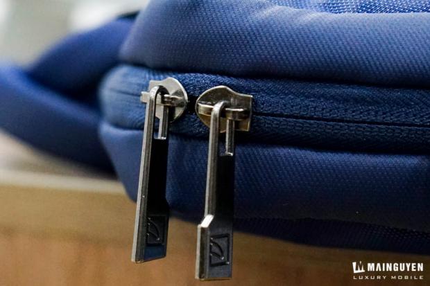 Vì đây là một sản phẩm chống nước nên ta có thể dễ dàng thấy các đường khóa kéo dẽ được một lớp vài bên ngoài bọc kín lại, giúp cho khi di chuyển khi trời mưa, nước sẽ khó mà lọt vào bên trong.