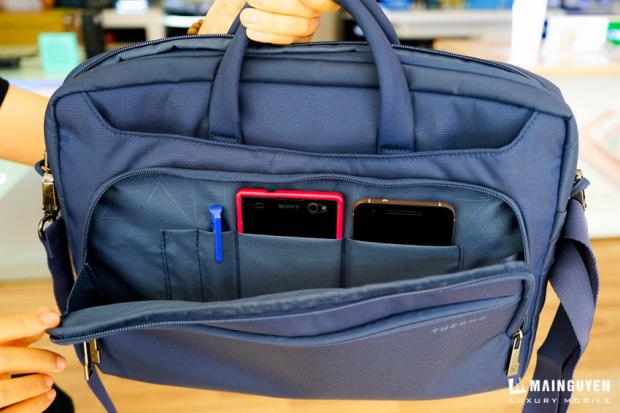 Ở bên trong ngăn nhỏ nhất dưới cùng, bạn có thể để các vật dụng nhỏ như sổ tay, chìa khóa hay các vật dụng cá nhân. Ở ngăn thứ 2, ngoài việc là một ngăn đựng đồ lớn hơn như sạc, cáp, ... thì Tucano trang bị cho người dùng 4 ngăn nhỏ khác để đựng điện thoại hay bút viết.