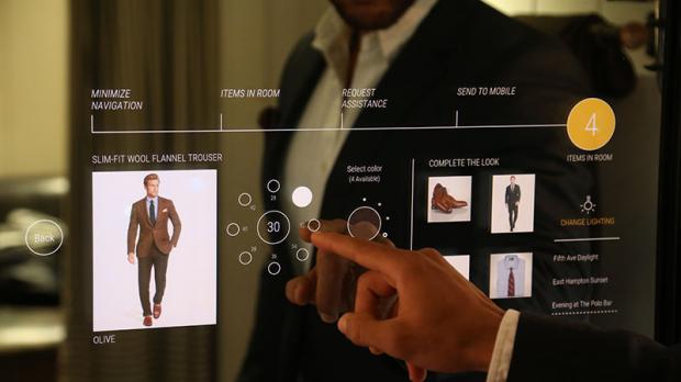 Ví dụ như khi bạn mang một chiếc áo vào thử, các thẻ RFID trên sản phẩm sẽ được quét và hiển thị thông tin lên gương. Trong đó bao gồm các thông tin về kích cỡ, màu sắc còn khả dụng của mẫu đang xem tại cửa hàng hoặc hệ thống bán lẻ đó