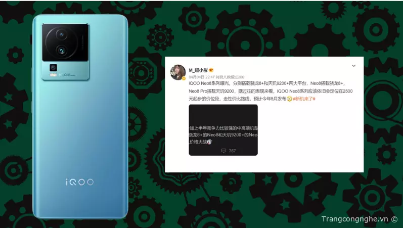 Vivo iQOO Neo 8 Pro sắp ra mắt hiện được rất nhiều người dùng mong chờ và đồn đoán. Hiện lượt tìm kiếm trên Google về chiếc điện thoại này đang tăng vọt. Trong số đó có ba câu hỏi được tìm kiếm nhiều nhất. Vì vậy, Trangcongnghe.vn sẽ giải đáp cho các bạn có cùng thắc mắc trong nội dung bên dưới nhé!