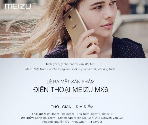 Theo lời mời thì lễ ra mắt MX6 sẽ được tổ chức từ 13h45 – 16h30 ngày 6/10 tại khách sạn Nikko Sài Gòn, 235 Nguyễn Văn Cừ, Nguyễn Cư Trinh, Quận 1, TP.HCM.