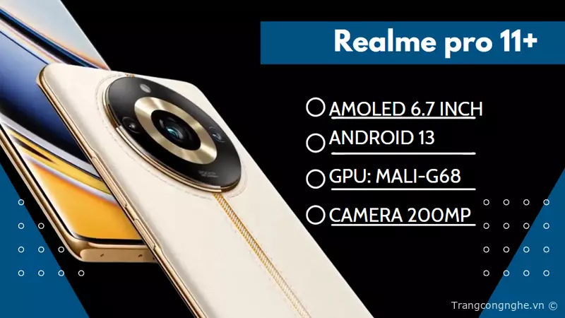 Realme đã không ngừng đưa ra những smartphone ấn tượng và thú vị trong thời gian gần đây. Và trong bài viết này, trangcongnghe.vn sẽ tìm hiểu chi tiết về dòng điện thoại sắp được ra mắt của hãng là Realme Pro 11+ với ba yếu tố chính: Màn hình, camera và chipset.