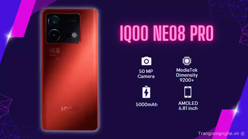 Theo các thông tin rò rỉ mới nhất, điểm nhấn của iQOO Neo 8 series là màn hình AMOLED siêu đẹp với tốc độ làm mới lên đến 144Hz. Ngoài ra, sản phẩm cũng được trang bị sạc nhanh 120W và rất nhiều tính năng nổi bật khác, giúp người dùng tiết kiệm thời gian và dễ dàng sử dụng. Để tìm hiểu sâu hơn về dòng iQOO Neo8 series, Trangcongnghe.com.vn sẽ review chi tiết về sản phẩm này.