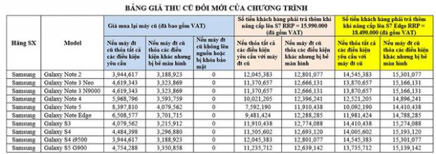Qua tham khảo bảng giá, có thể thấy các máy Galaxy cũ được Samsung mua lại với giá cao hơn rất nhiều so với thị trường. Ví dụ như chiếc Galaxy Note 2 ra mắt hồi năm 2012, trên thị trường điện thoại cũ có giá chỉ khoảng 2 triệu, nhưng Samsung sẵn sàng mua lại với giá 3.9 triệu nếu máy còn hoạt động tốt. Thậm chí, chiếc Galaxy S3 còn được Samsung mua lại với giá lên đến 4 triệu, trong khi giá bán thực tế của máy cũ chỉ khoảng 1 triệu.