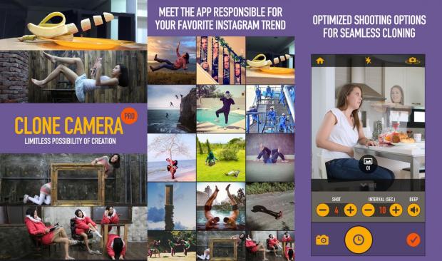 Clone Camera Pro có thể giúp bạn chụp hình ở nhiều chế độ khác nhau và ghép lại thành một hình với nhiều tư thế khác nhau. Giống như kiểu bạn có thể phân thân thành nhiều người như dị nhân đã cướp 7 ngân hàng cùng một lúc trong phim X-Men - The Last Stand 2006.