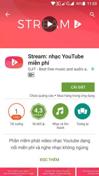 Truy cập vào CH Play tìm và tải về ứng dụng mang tên Stream: nhạc Youtube hoặc bạn có thể tải tại đây.