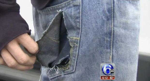 Theo đó, một sinh viên tại một trường cao đẳng Burlington County, NJ (Mỹ) vừa chia sẻ rằng chiếc iPhone 6 Plus đã phát nổ ngay trong túi sau quần jean của mình khiến túi bị rách và khiến anh phải ném ngay chiếc iPhone xuống sàn nhà.