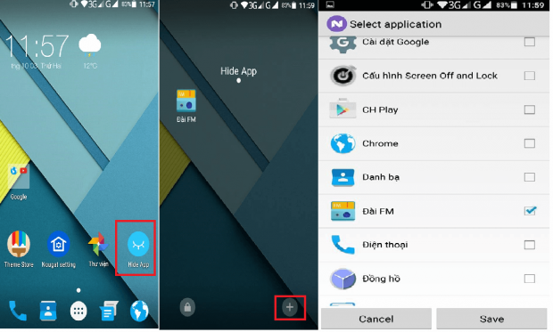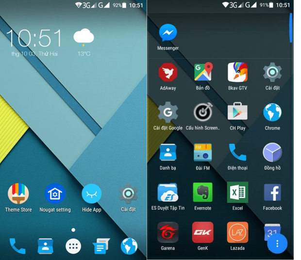 Một tính năng cũng khá hay trên Nougat Laucher là Hide App ẩn đi 1 số App không cần thiết giúp giao diện bạn gọn gàng hơn.