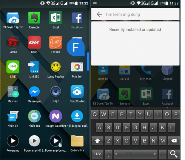 Ngoài thay đổi về mặt giao diện, Nougat Laucher còn giúp thao tác tìm ứng dụng tốt hơn bằng thanh kéo bên mép phải màn hình hoặc vuốt nhẹ từ trên xuống dưới để ra tab tìm nhanh ứng dụng rất tiện lợi.