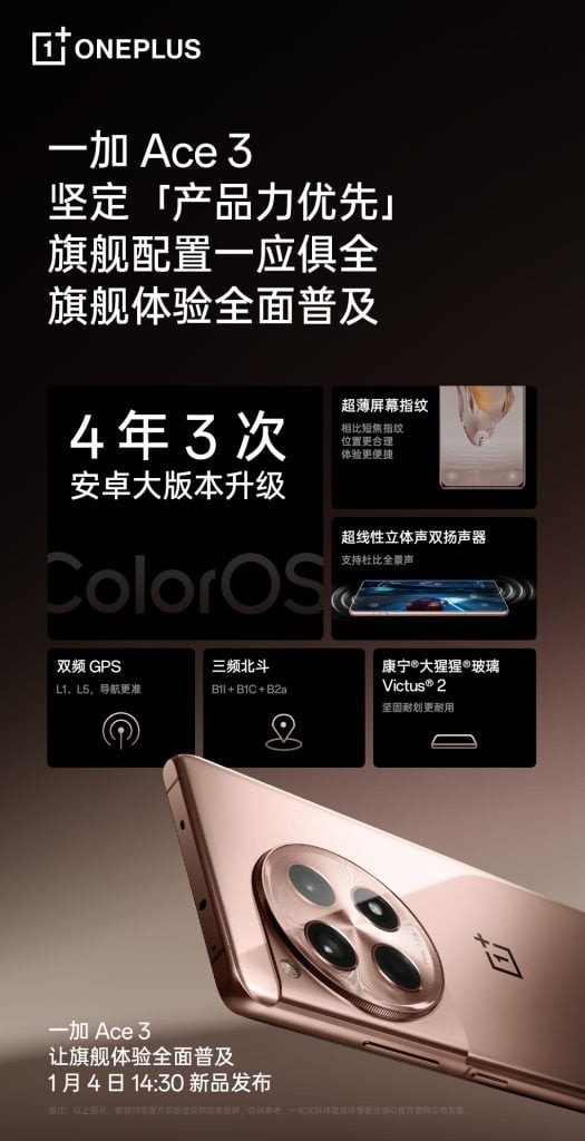 OnePlus đang chuẩn bị cho sự kiện ra mắt Ace 3 tại Trung Quốc vào ngày 4/1, gần đây hãng liên tục tung poster quảng bá cho sản phẩm mới. Gần đây nhất, bài đăng đã giới thiệu sơ qua về màn hình, hệ thống loa và hệ điều hành của thiết bị mới tới công chúng.