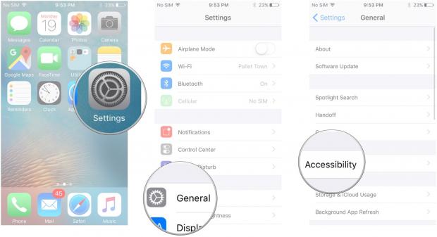 Vào Settings -> General -> Accessibility.