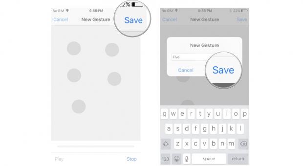 Chọn Play để xem trước cử chỉ của bạn, Record để ghi lại, hoặc Save ở góc trên bên phải để lưu.
