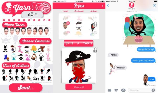 Yarn Spin là ứng dụng tạo nhãn dán sticker cực hài hước. Chọn gương mặt mà bạn cần hoán đổi với sticker, sau đó gửi chúng tới bạn bè để khiến họ ngạc nhiên. Bởi chỉ có gương mặt là của bạn (hoặc ai đó), các phần còn lại là của sticker bao gồm kiểu dáng cướp biển, Fairy, Ninja, Viking, Ballerina, Mermaid, mèo, thỏ con và nhiều hơn thế nữa.