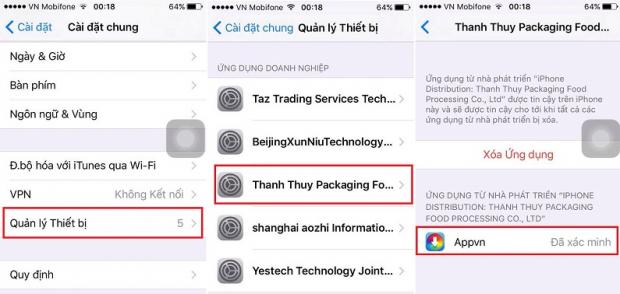 Vào Cài đặt > Cài đặt chung > Quản lý thiết bị và bật cấp phép cho ứng dụng.