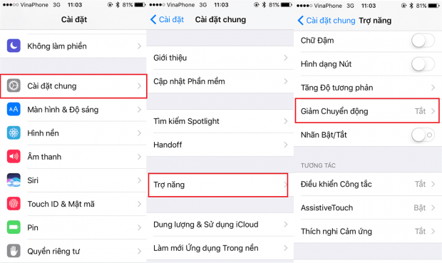 Để mọi thứ quay lại nguyên vẹn, bạn hãy vào Cài đặt chung > Trợ năng và tắt tính năng Giảm chuyển động. Được biết Giảm chuyển động ngoài mục đích chính là dành cho người có khiếm khuyết về thị giác, thì nó còn được nhiều người dùng sử dụng do khiến máy chạy nhanh hơn.